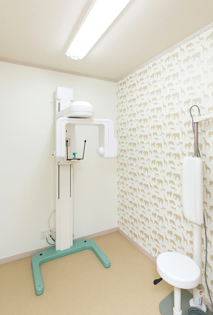 従来のレントゲン撮影よりも最大1/10の線量で身体にやさしく、現像液などの廃液も出ないので、環境にもやさしくなっています。